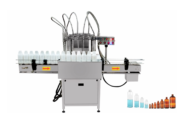 Automatic filling of small- to medium-size bottles for liquids like daily chemicals, cosmetics, or sauces.