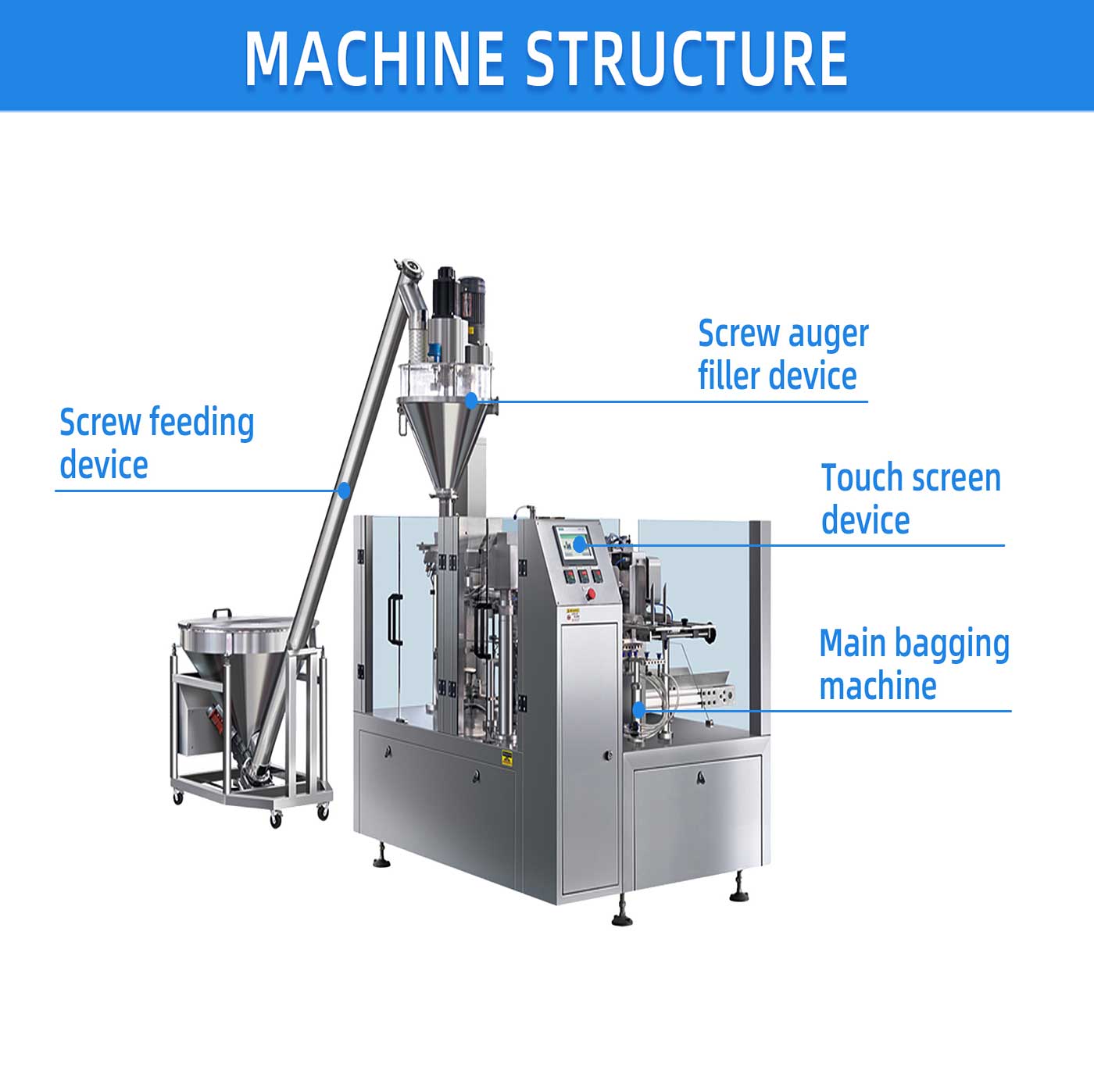This machine is ideal for weighing and packaging various powder materials, such as milk powder, coffee powder, salt powder, sugar powder, rice/wheat/corn/bean flour powder, washing powder, chemical product powder, medical powder, feed additives powder, and more.